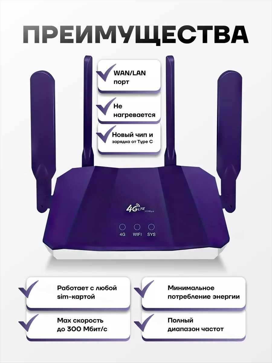 Роутер Wi-Fi с поддержкой SIM-карты 4G — ваш надежный источник быстрого и стабильного интернета дома, на даче, в офисе или в путешествии! Этот современный 4G роутер с сим-картой обеспечивает высокоскоростное подключение к интернету без необходимости проводного доступа.